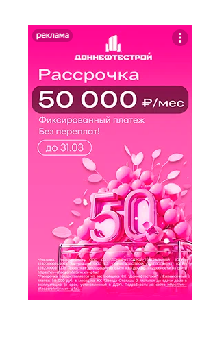 • При первоначальном взносе 50% ежемесячный платеж составит всего 35 000 рублей